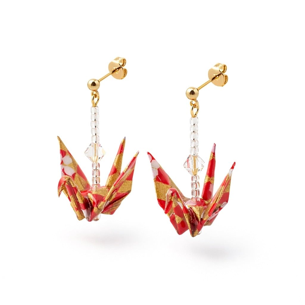 折り鶴イヤリング(クリスタル付)|赤