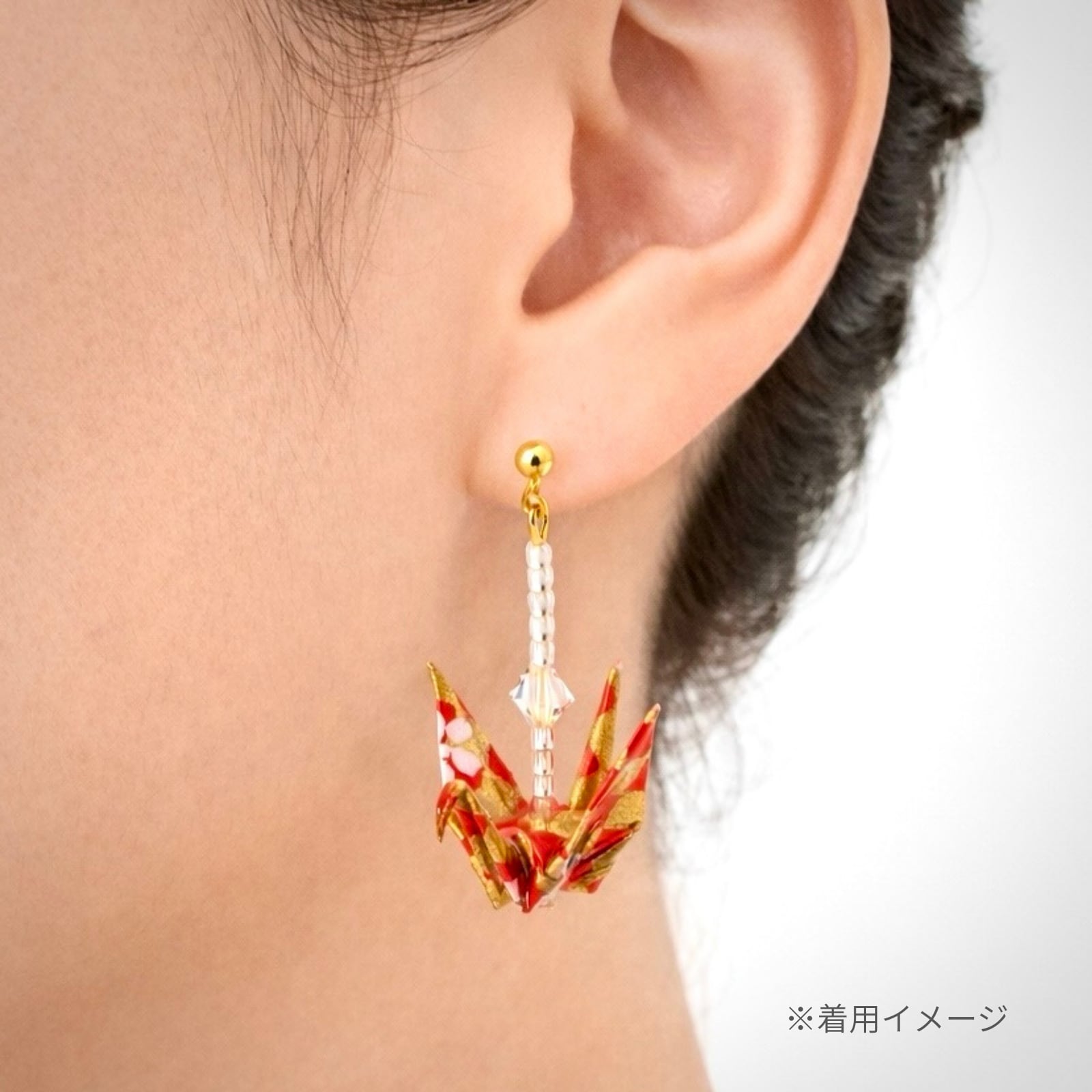 「何これ?」と、思わず目に留まる折り鶴ピアス。