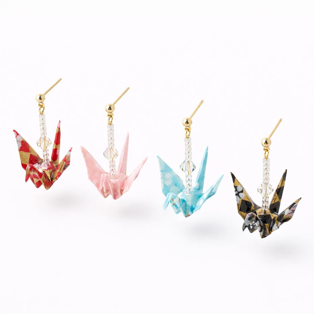 「何これ?」と、思わず目に留まる折り鶴ピアス。