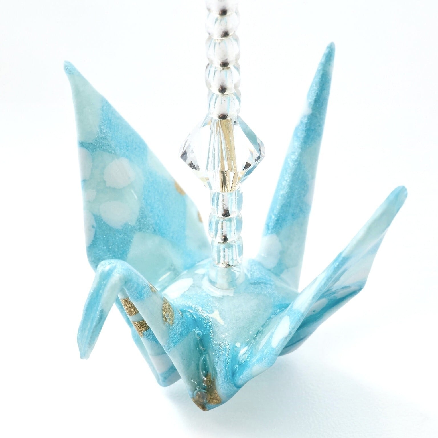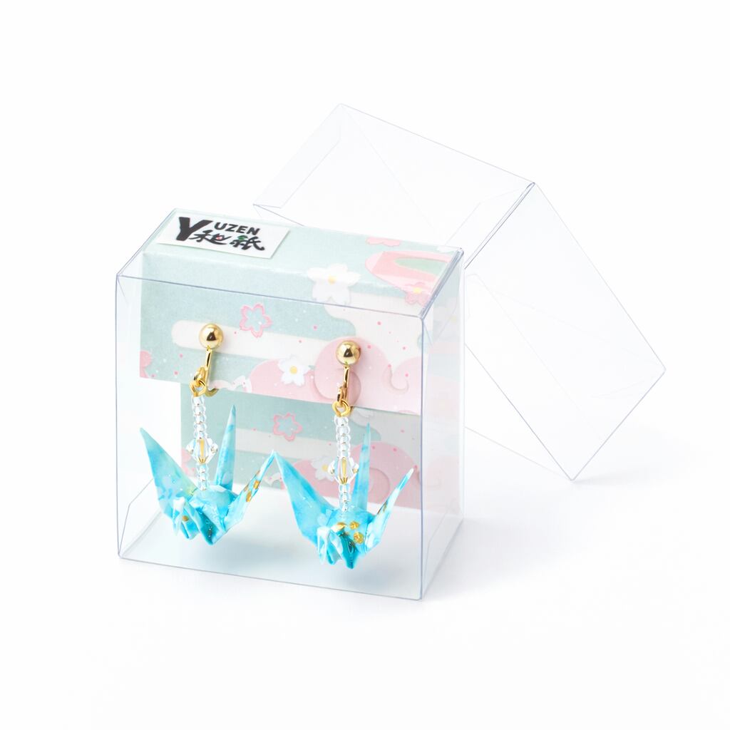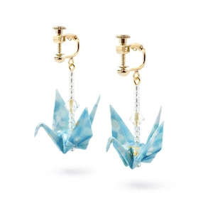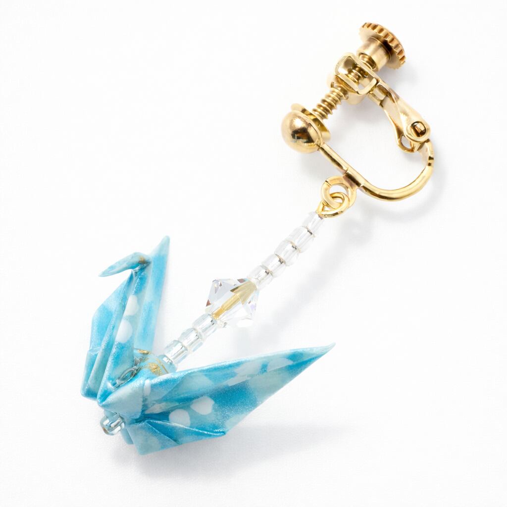 折り鶴イヤリング(クリスタル付)|水色