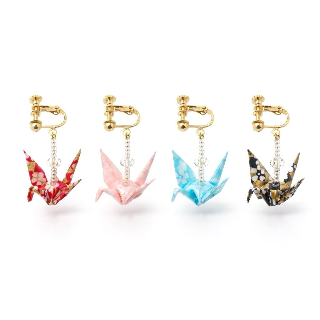 「何これ?」と、思わず目に留まる折り鶴イヤリング。