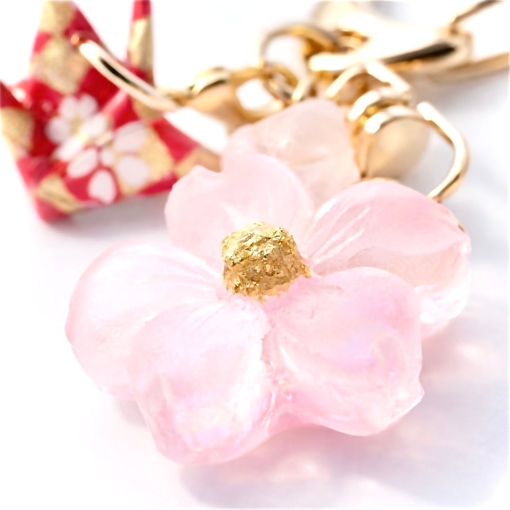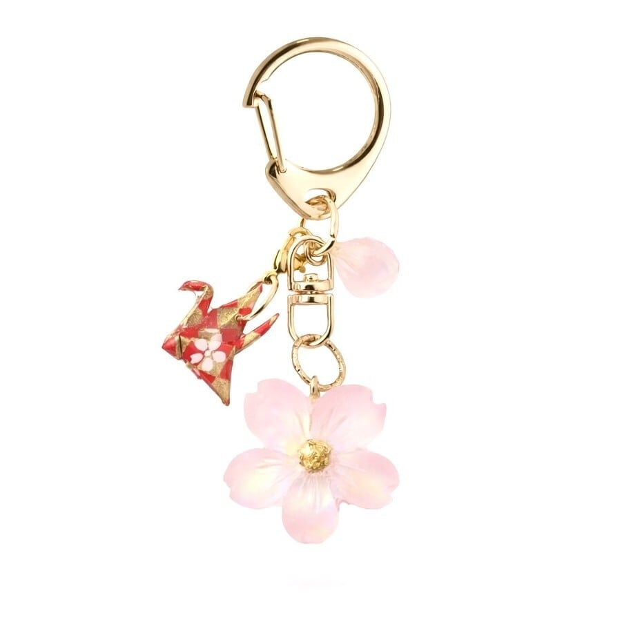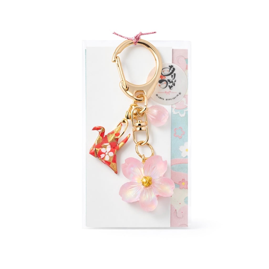 桜と折り鶴のキーホルダー