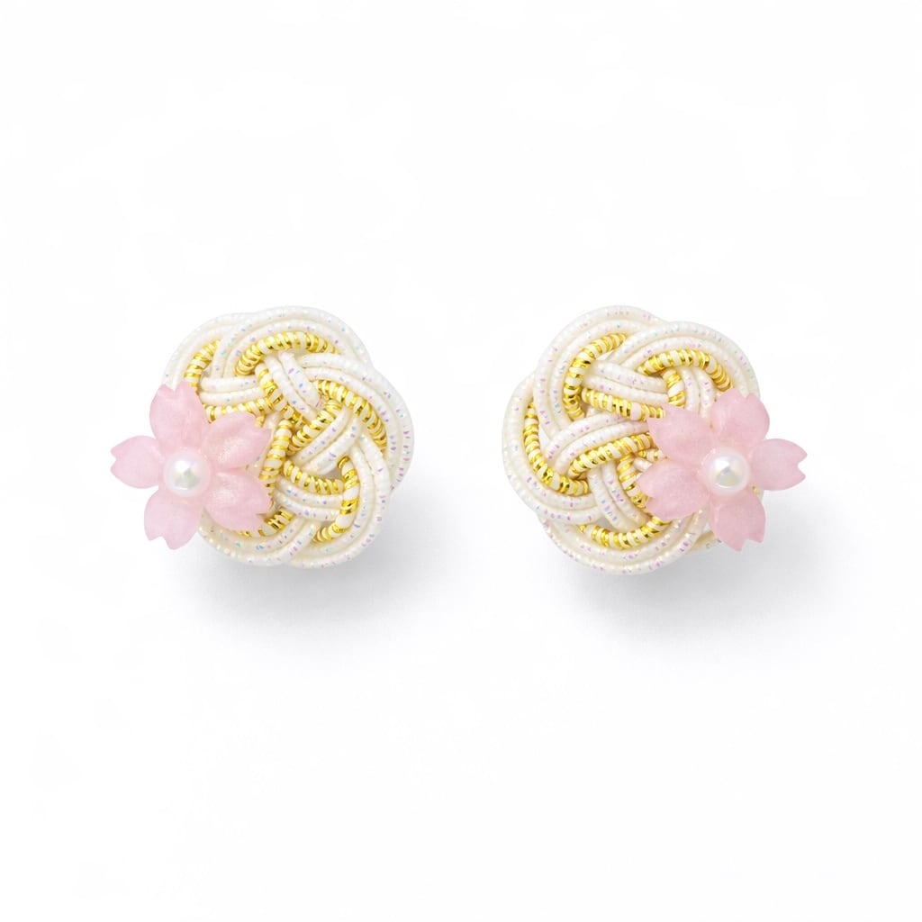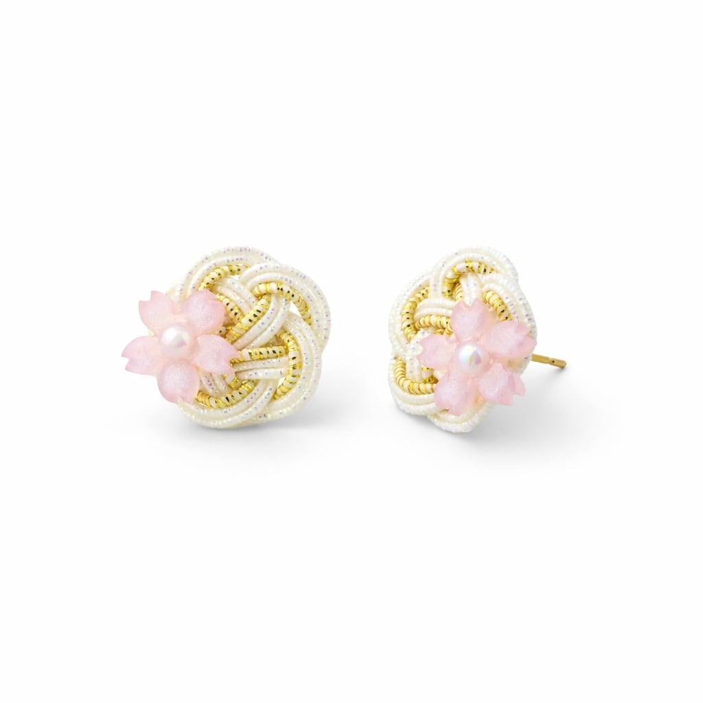 梅と桜のピアス(羽衣水引)|白
