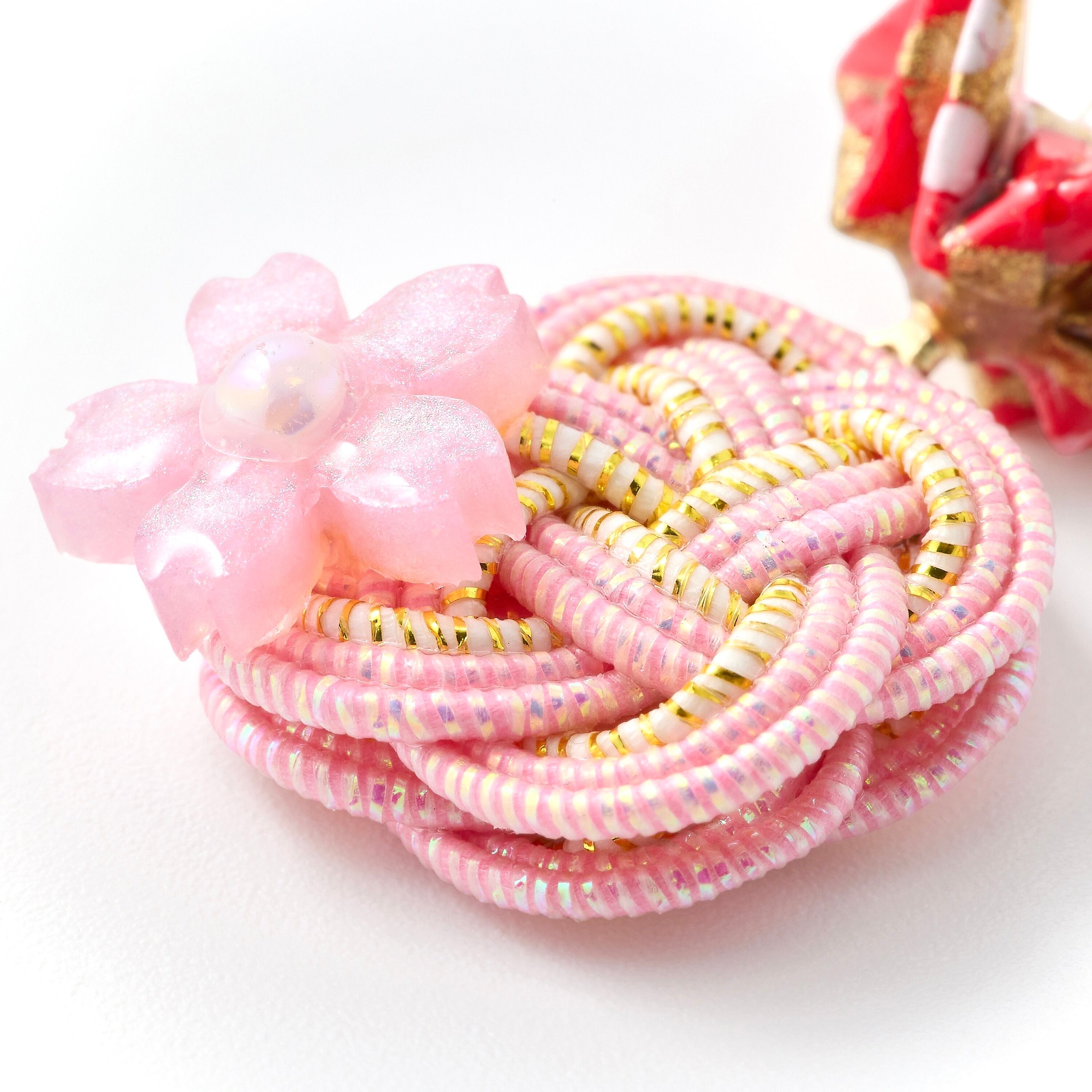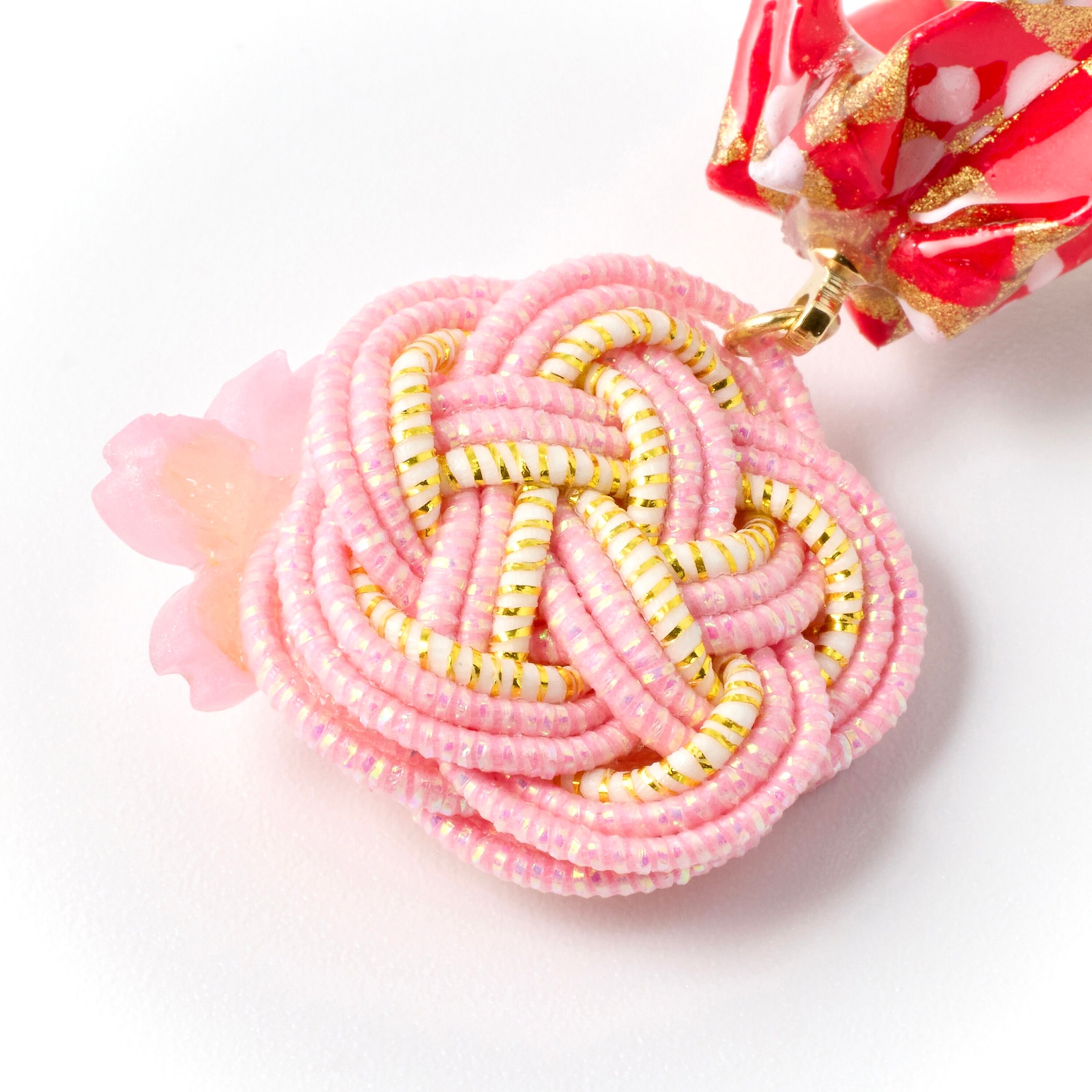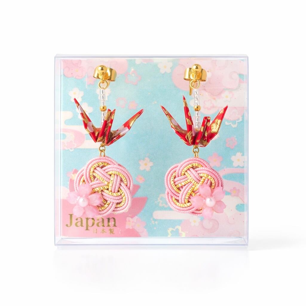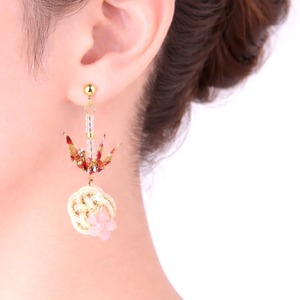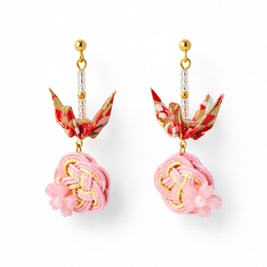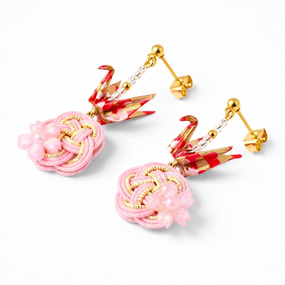 折り鶴と水引のピアス|ピンク