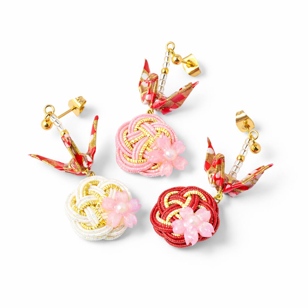 一般的な折り鶴ピアスとは異なり、折り鶴を中間に配置しています。