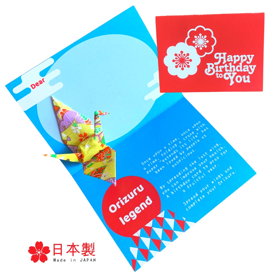 カードには折り鶴の伝説と一緒に【あなたが翼を開いて折り鶴を完成させて】と書いてあります。お誕生日の人に「あなたの健康を祈っています」という気持ちを伝えるサプライズBirthdayカードです。※こちらの商品はポップアップ式ではありません。手動で翼を広げていただく仕様です。